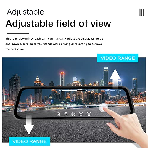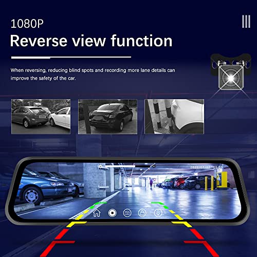 CAMECHO 9.66″ Mirror Dash Cam Rear View Mirror Camera Front and Rear 1080P Backup Camera with 64GB Card, Touch Screen Dual Front and Rear Camera/Night Vision/G-Sensor/Parking Monitor/Loop Recording