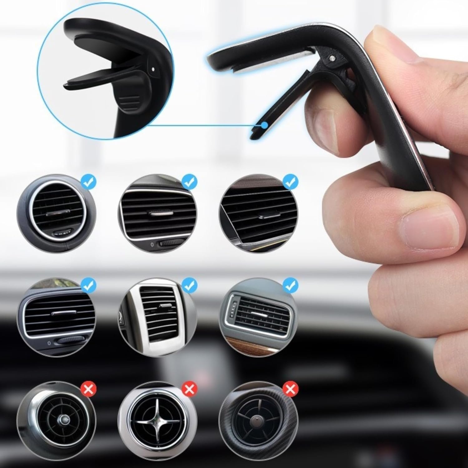 L-Shape Design Magnetic Phone Holder for Car – This magnetic phone mount for car features an innovative L-shaped design, perfectly adapting to any 4-inch or 6-inch smartphone. The ultra-strong magnetic phone mount ensures your device stays securely attached, even during sudden stops or sharp turns.