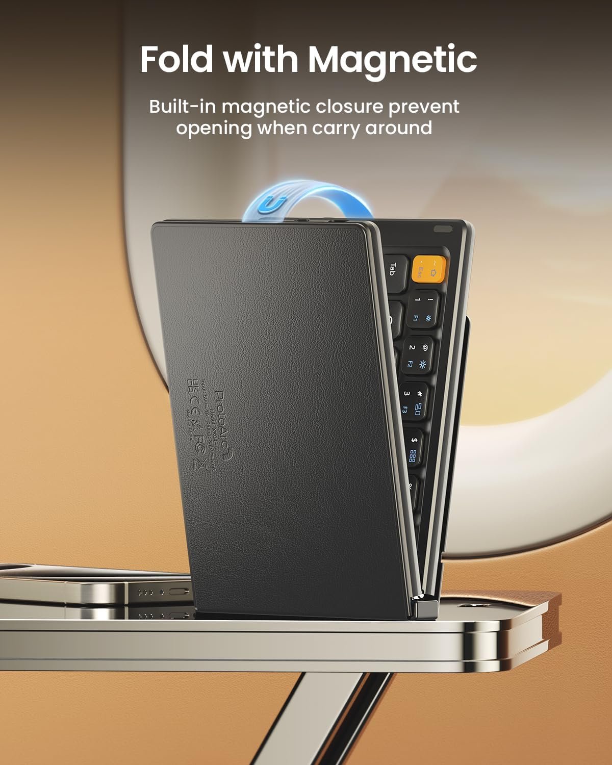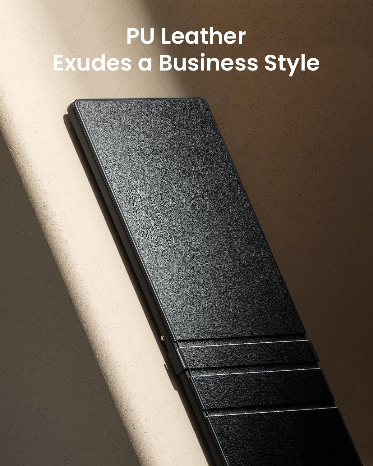【Folding Mini Keyboard】 Only a 7.8-ounce palm-sized foldup keyboard is designed in two-fold and compact enough to save desk space or take it on the go. Covers with PU Leather surface, good texture and protection, a perfect companion for business travelers. Maximum convenience for you with minimum weight and size