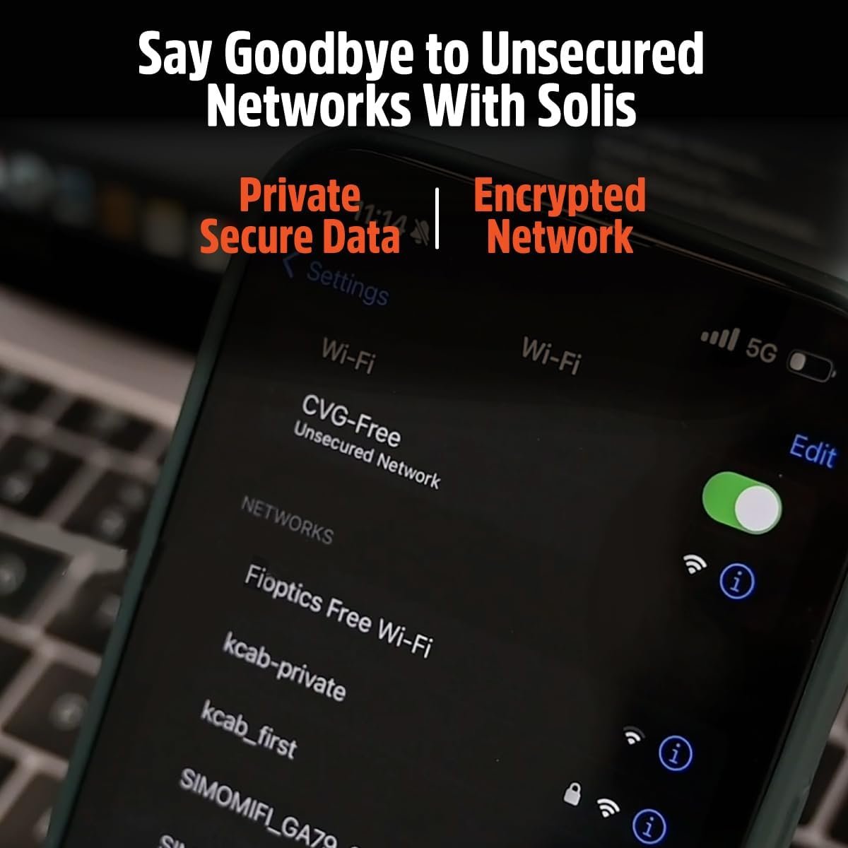 Easy to Use: Simply download the Solis app and register your device; start using your Lifetime Data plan or add an additional WiFi option to safely and privately connect to available signals